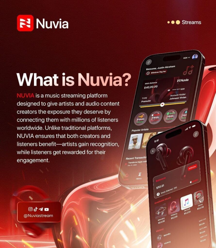 Nuvia is a revolutionary audio experience β a digital space π§ built to amplify creators and appreciate listeners π° in equal measure. Not like your usual platforms, Nuvia reimagines the music economy π by rewarding every voice and every ear.